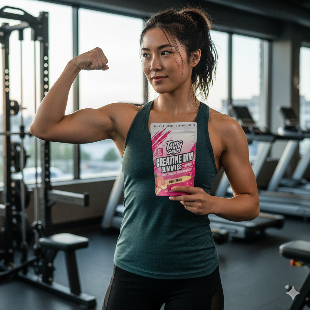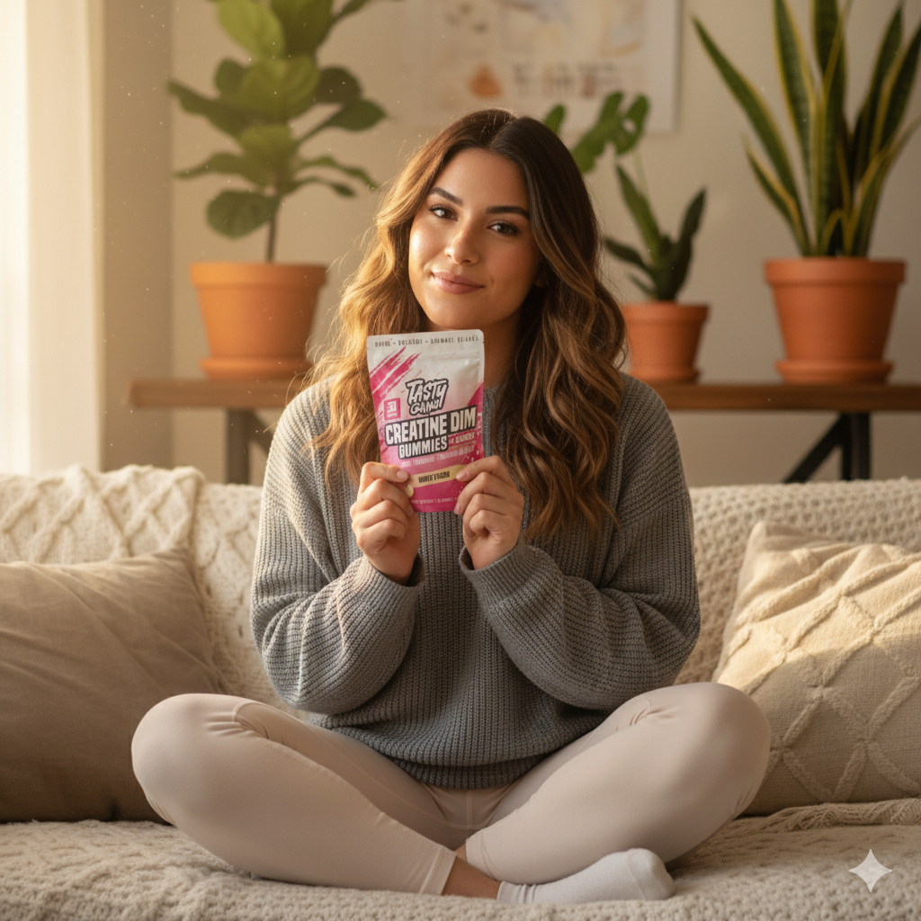 Our Creatine DIM Gummies are perfect if you want a simple, tasty, and consistent way to support strength, energy, and hormone balance — without mixing powders or measuring scoops.